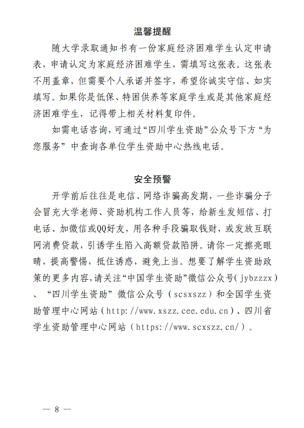 第三步:学生持《生源地信用助学借款合同》和《生源地信用助学借款确认函》到高校报到注册,并将高校盖章确认的《生源地信用助学借款确认函》回执,在报到后20个工作日内,以邮寄或其他有效方式送达户籍地县级教育行政部门学生资助管理中心。