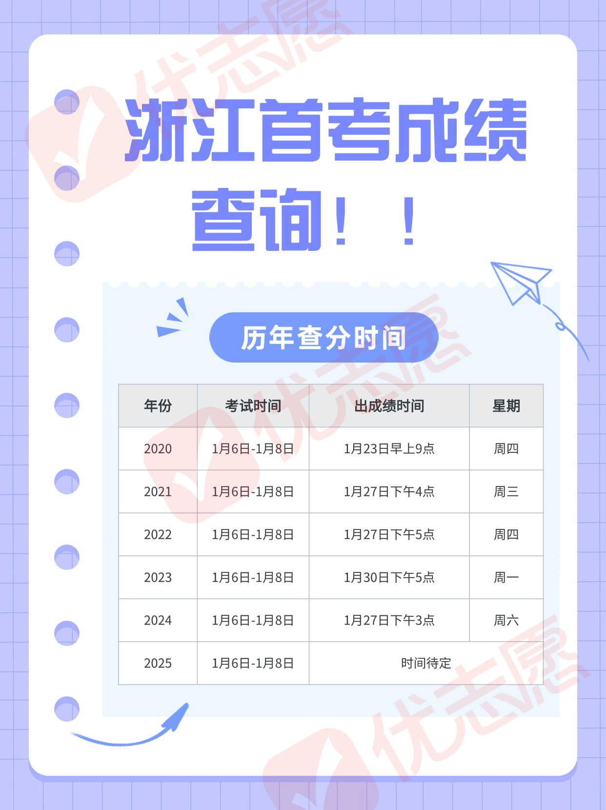 虽然官方没有公布具体查分时间,但根据2020-2024年浙江省近五年的首考成绩公布时间来看,学考和选考一般会在考后20天左右同时出成绩。而且,除非是和春节假期撞时间了,一般情况下首考成绩多数会选择在1月27日公布。