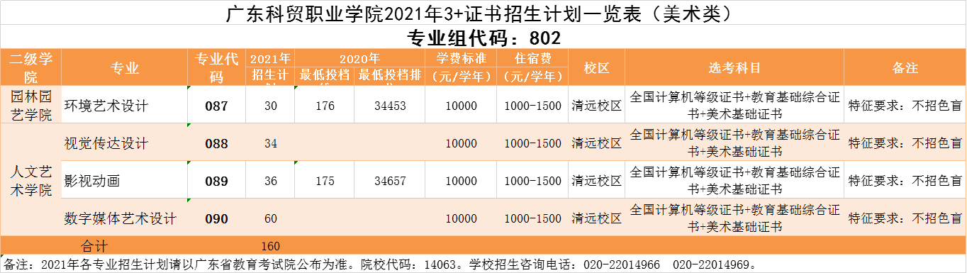 2021年3+证书招生计划一览表(美术类)