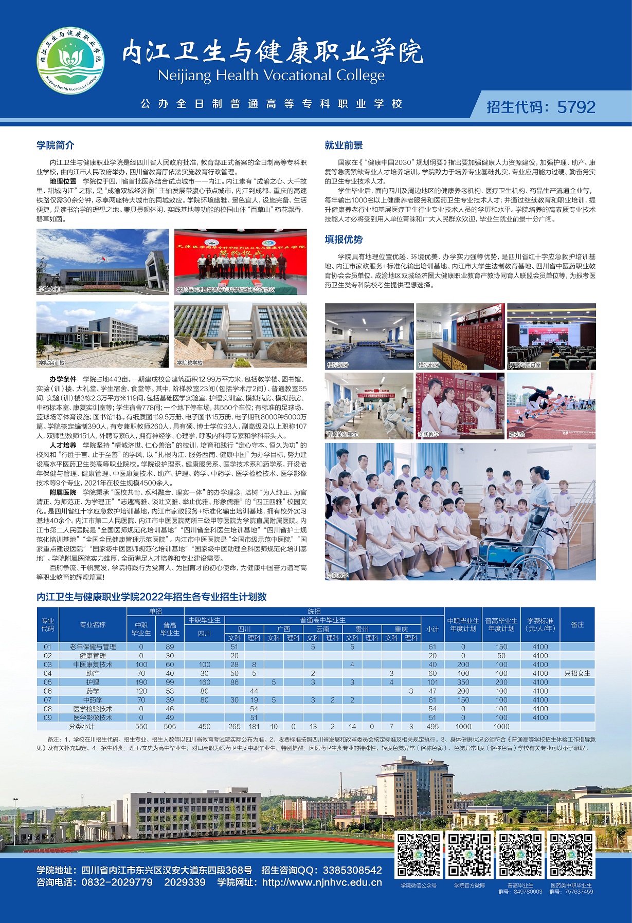 内江卫生与健康职业学院2022年普通高职(专科) 招生简章