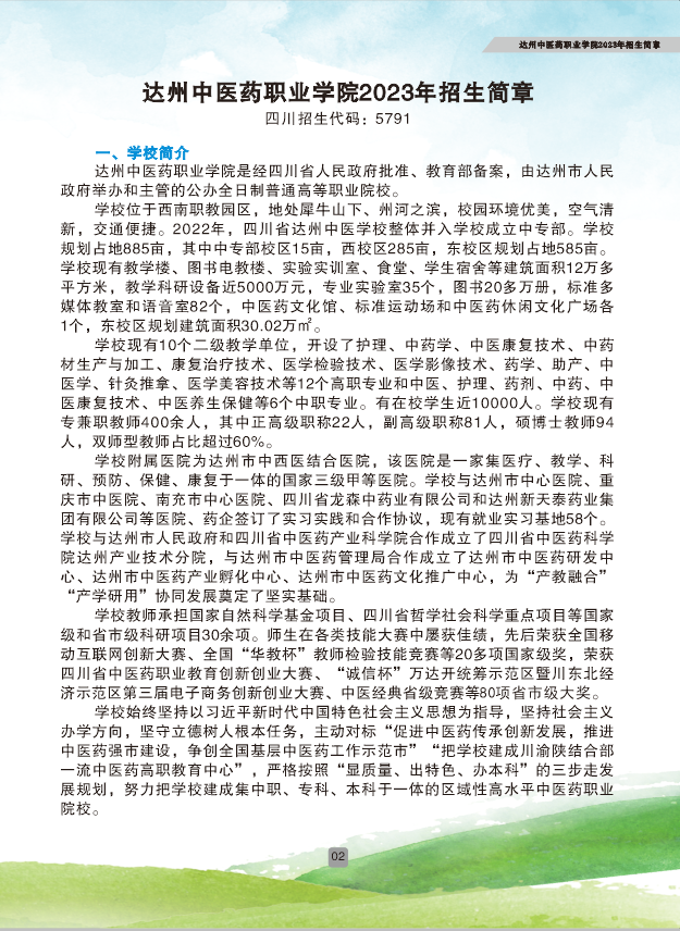 达州中医药职业学院2023年招生简章
