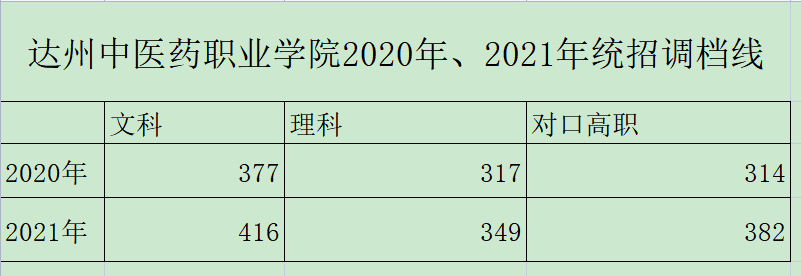 达州中医药职业学院2020、2021年统招调档线