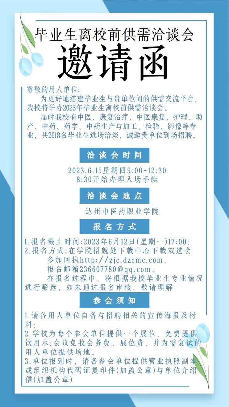 毕业生离校前供需洽谈会邀请函