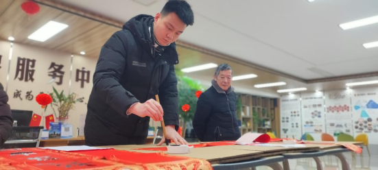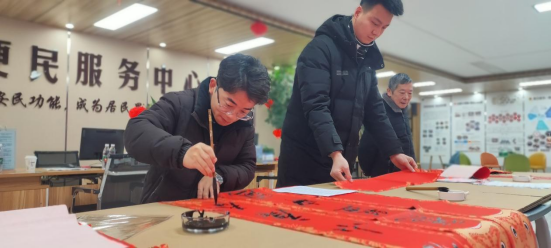参加南充市书协组织的东南街道西湖社区送春联活动