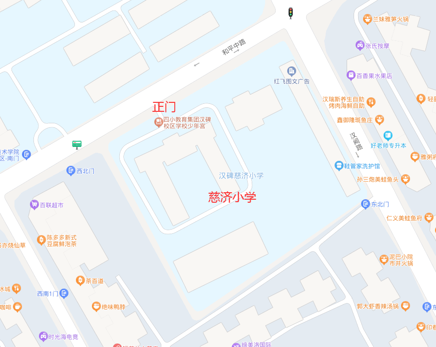 (二)慈济小学(雨城四小慈济校区)考场 慈济小学考场,从正门进出,地点:雨城区和平中路142号(青年路校区南门对面)。