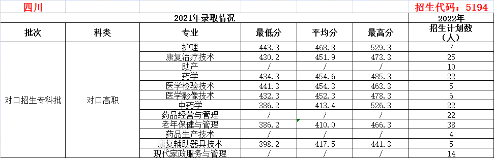 1:在川招生代码:5194 2:对口高职专业:12个 3:专业方向:2个 4:招生省份:6个 5:咨询电话:(0813)8283555、8283666、8283663 6:招生QQ群:829788742
