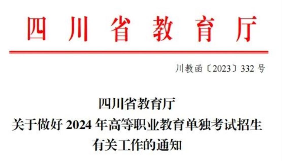 四川省教育厅发布了《关于做好2024年高等职业教育单独考试招生有关工作的通知》。通知中对2024年四川省高职单招工作做出了明确。