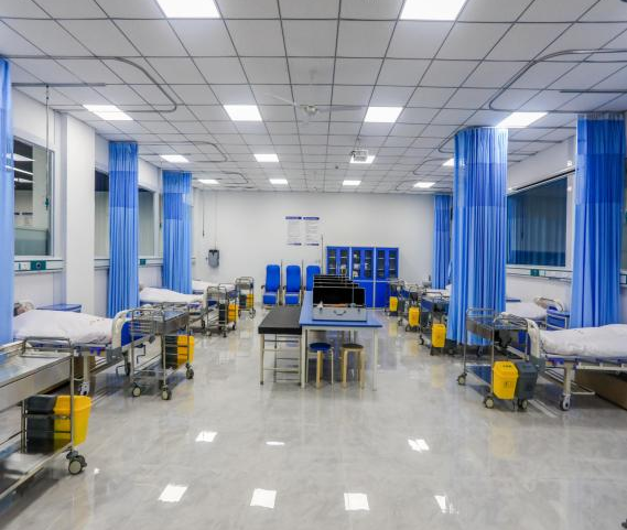 学院投入近千万元建成高标准、高规格、在全省民办学院领先的医护实训中心。实训中心拥有专业基础设备1086台/套,新建成实训室19个,形成了基础医学实训室、护理专业实训室、助产专业实训室、康复治疗技术专业实训室四大模块。医护实训中心设备先进、设施齐全、环境良好,实训条件贴近临床,实境仿真,完全能满足校内实践教学的需要。