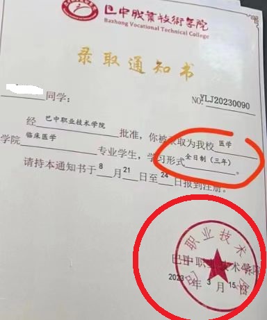 以上为虚假通知书:(1.公章无编号,2.通知书编号不对,3.无考生号,4报到时间不对,5无校长公章)