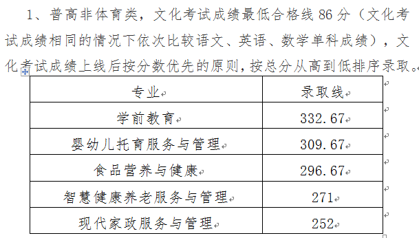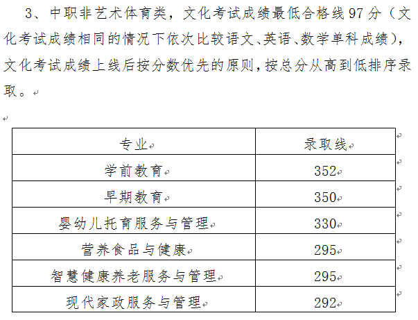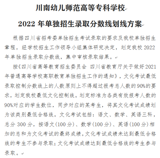 川南幼儿师范高等专科学校 2022年单独招生录取分数线划线方案
