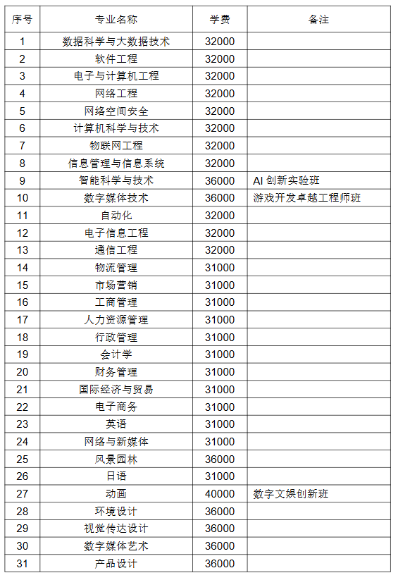 一、招生专业及收费标准