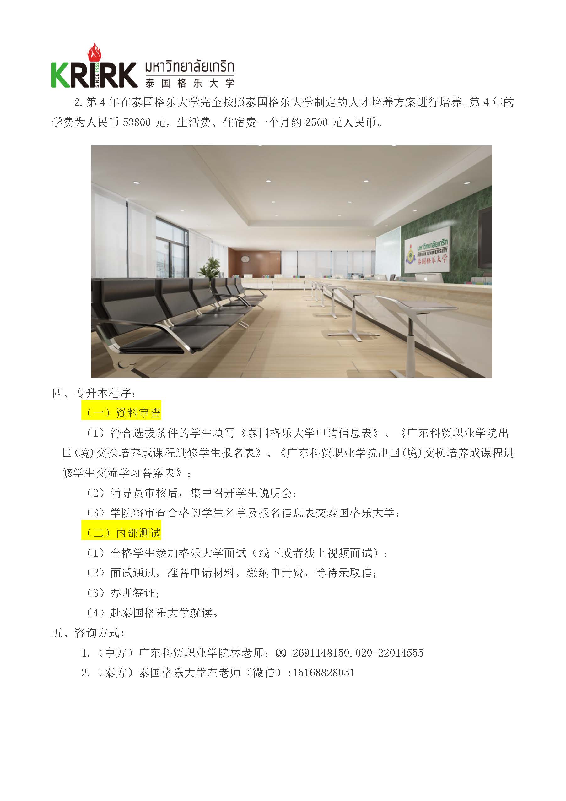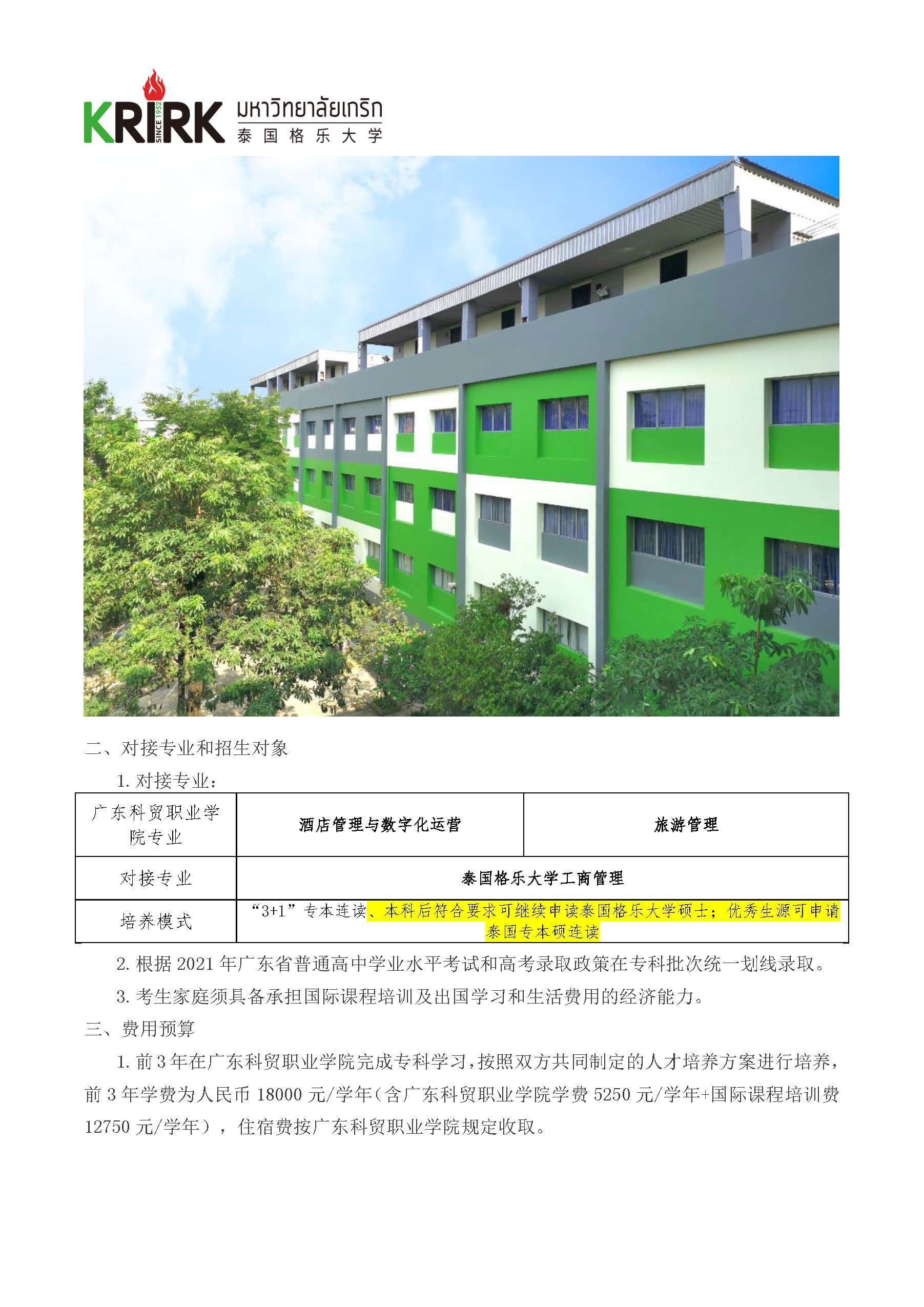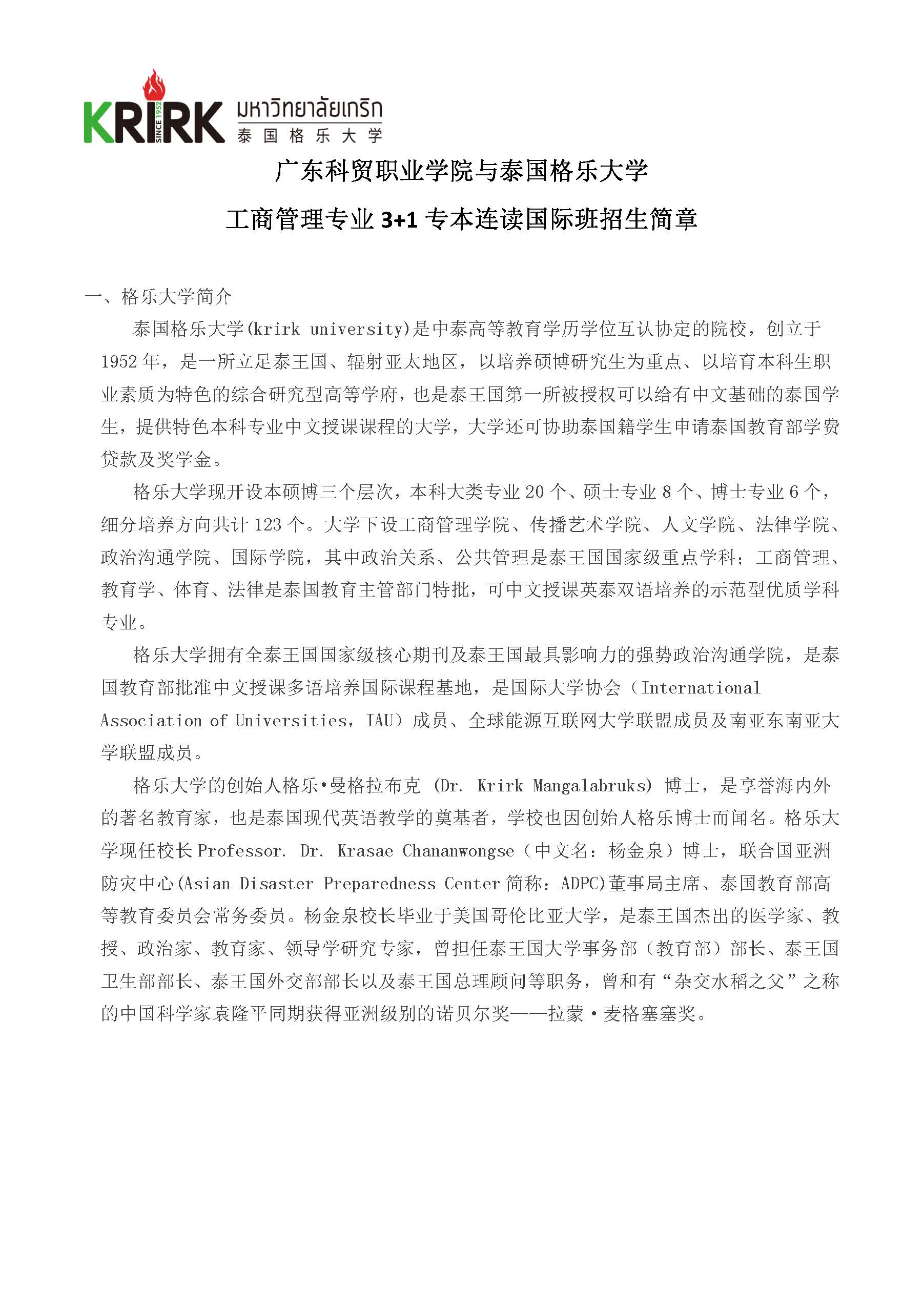 广东科贸职业学院与泰国格乐大学工商管理专业3+1专本连读国际班招生简章