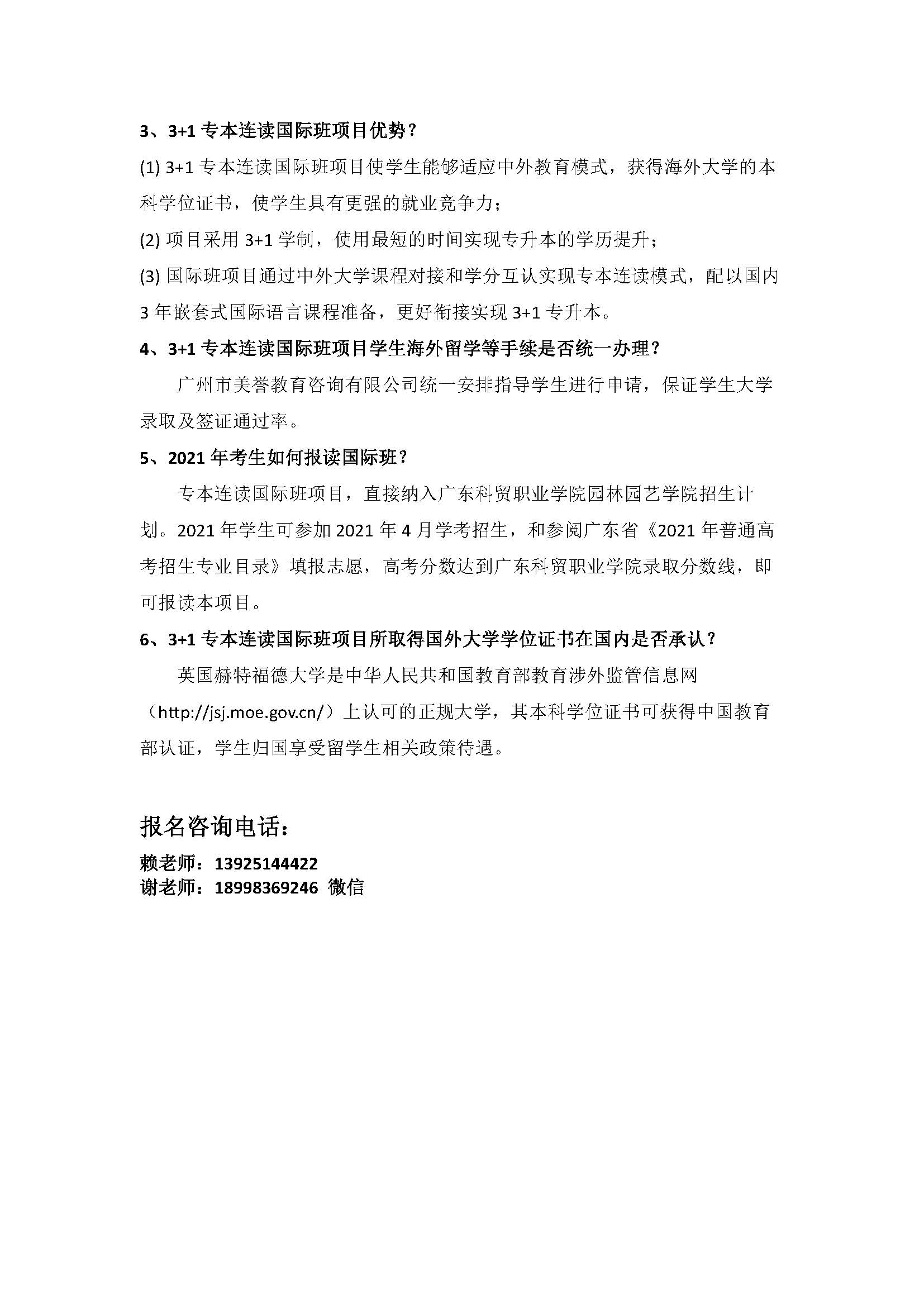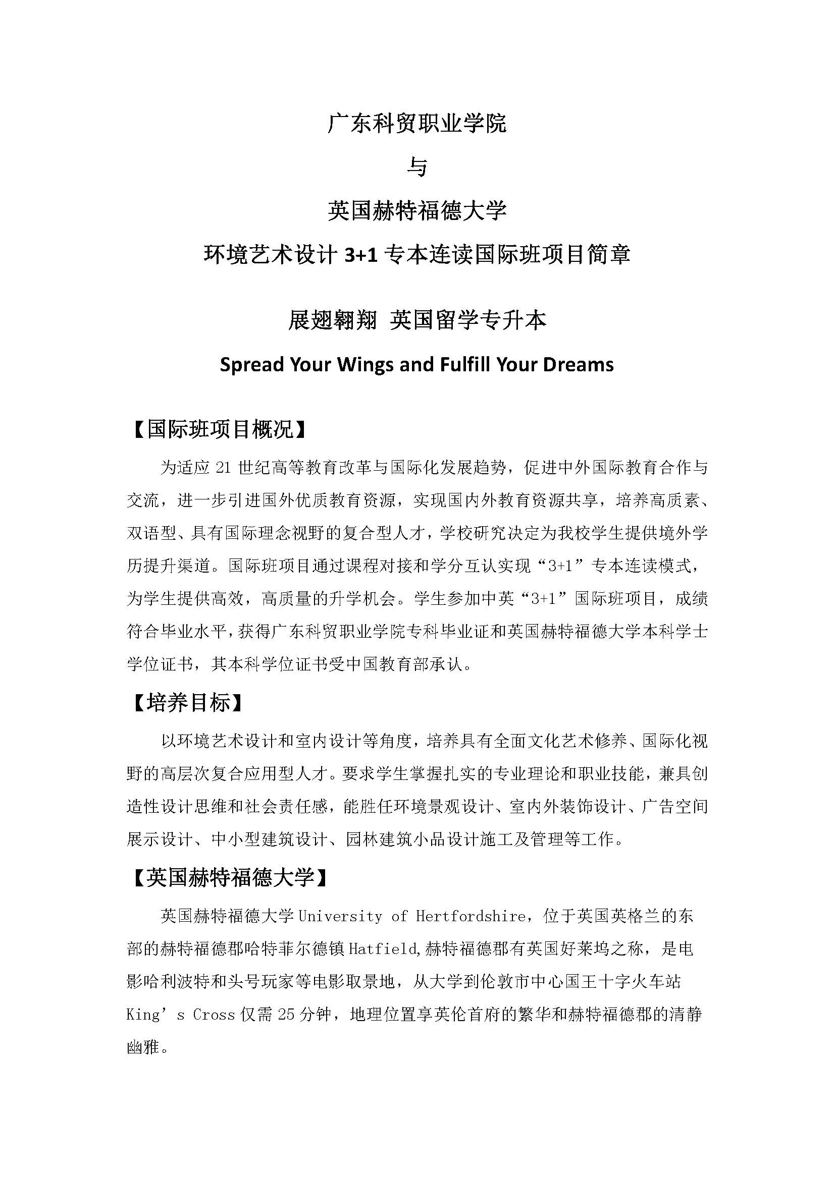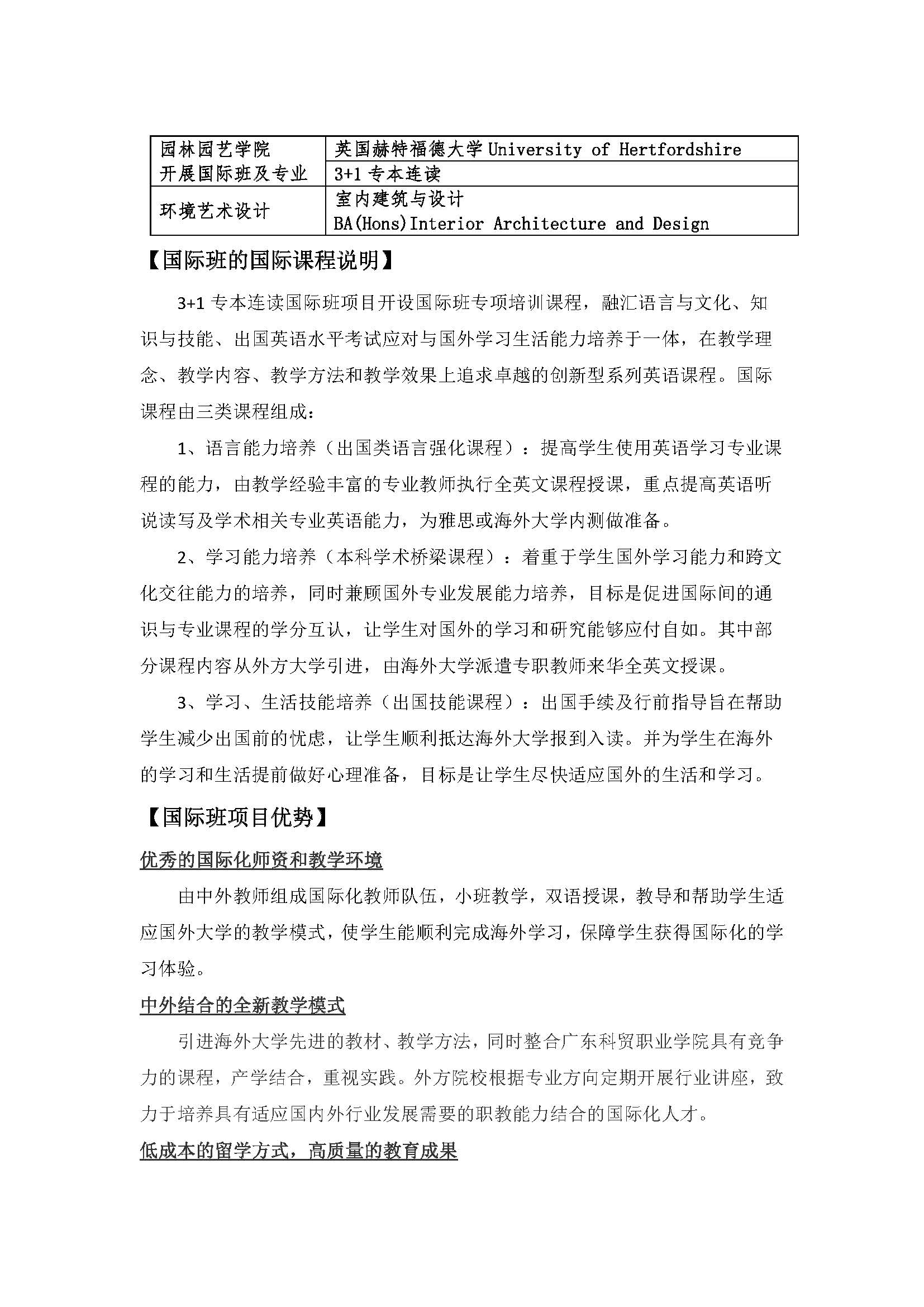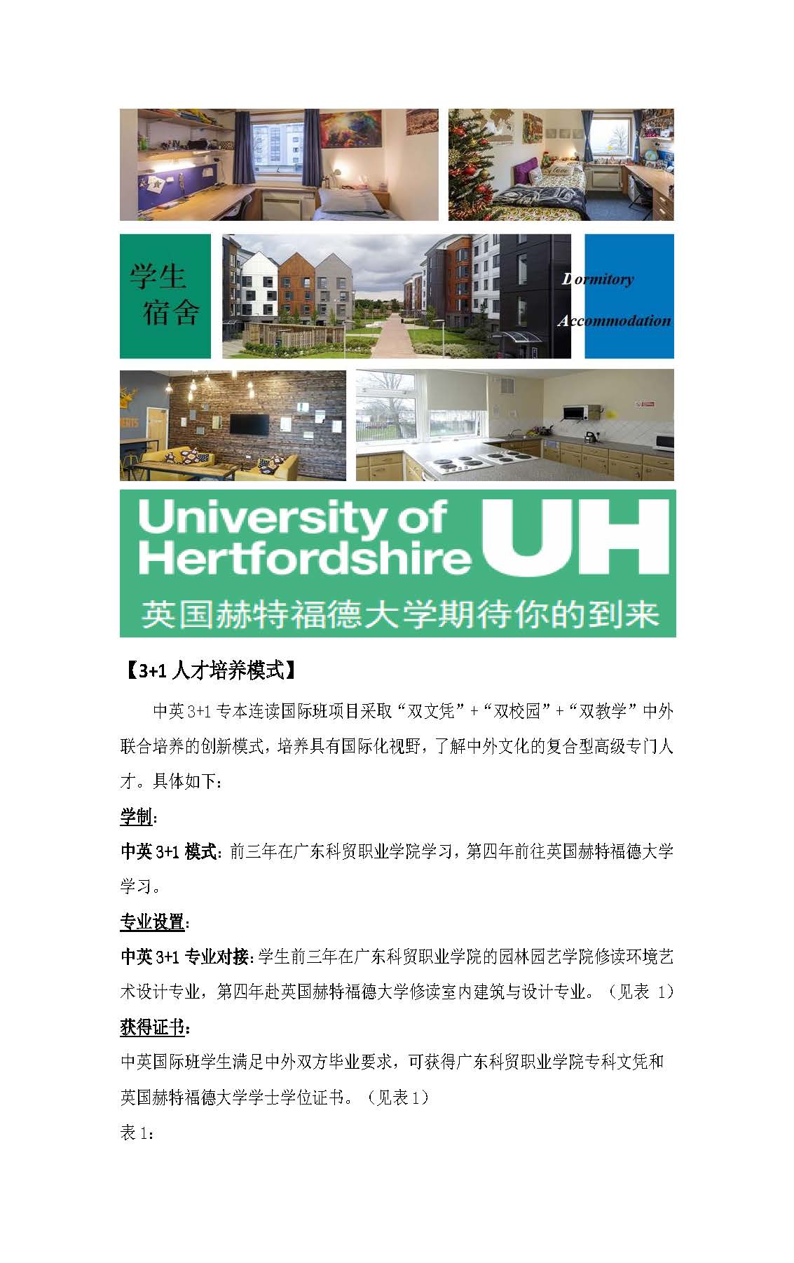 广东科贸职业学院与英国赫特福德大学环境艺术设计3+1专本连读国际班招生简章