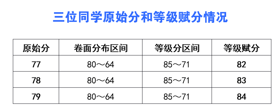 三是等级赋分与卷面分相比,可能高,也可能相等,但在该科目中的排序不变。