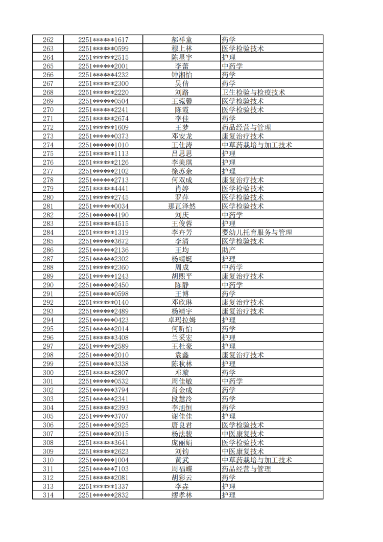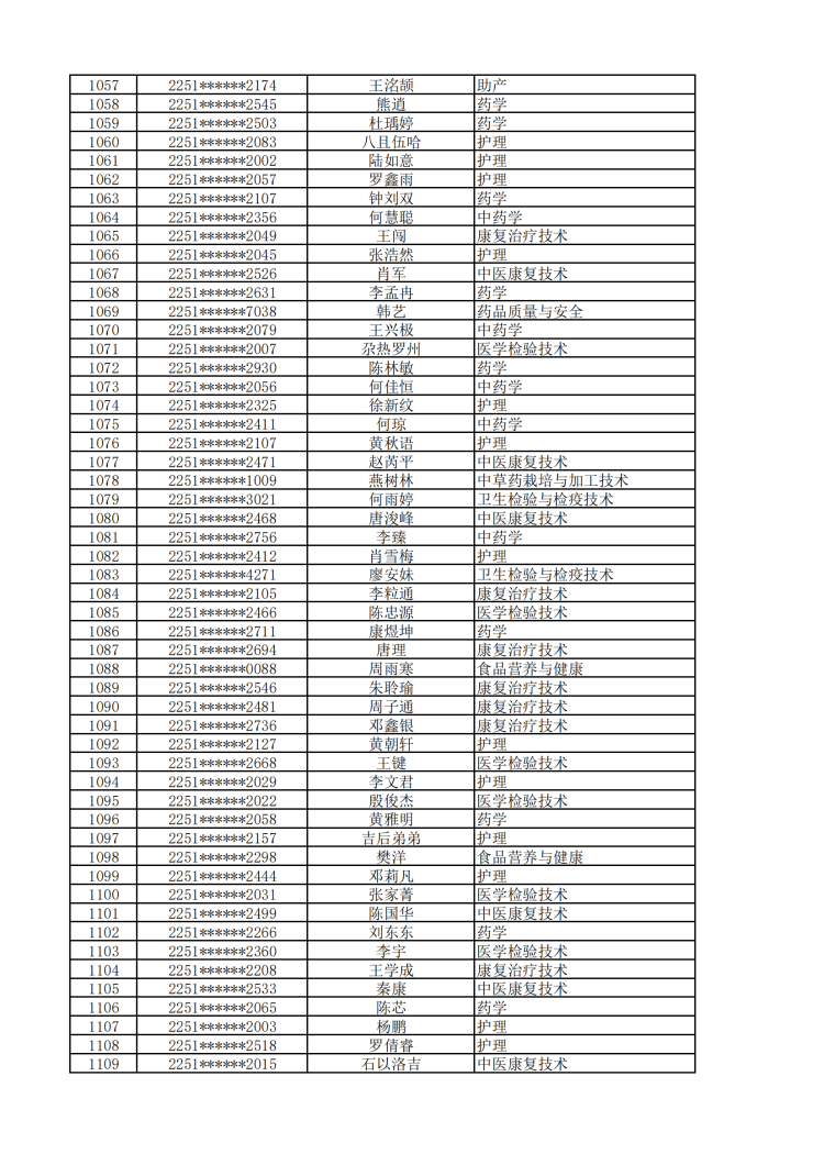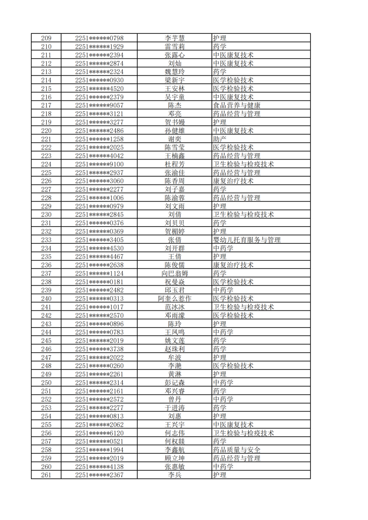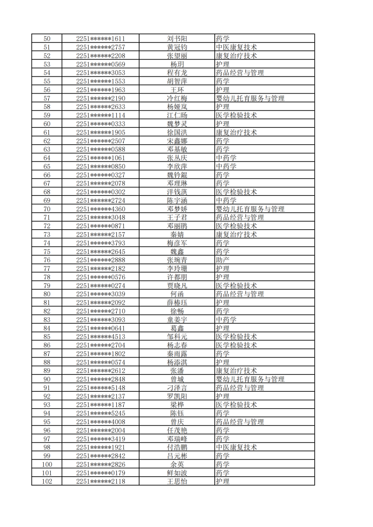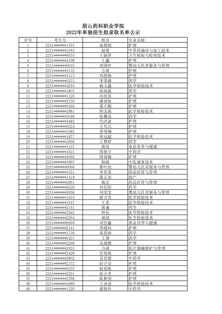 眉山药科职业学院2022年单独招生拟录取名单公示