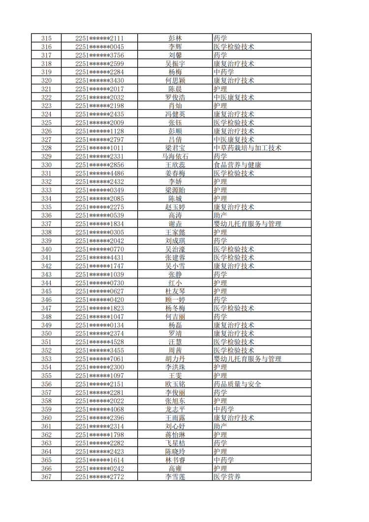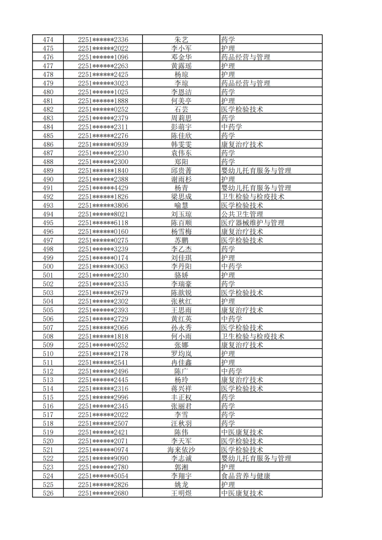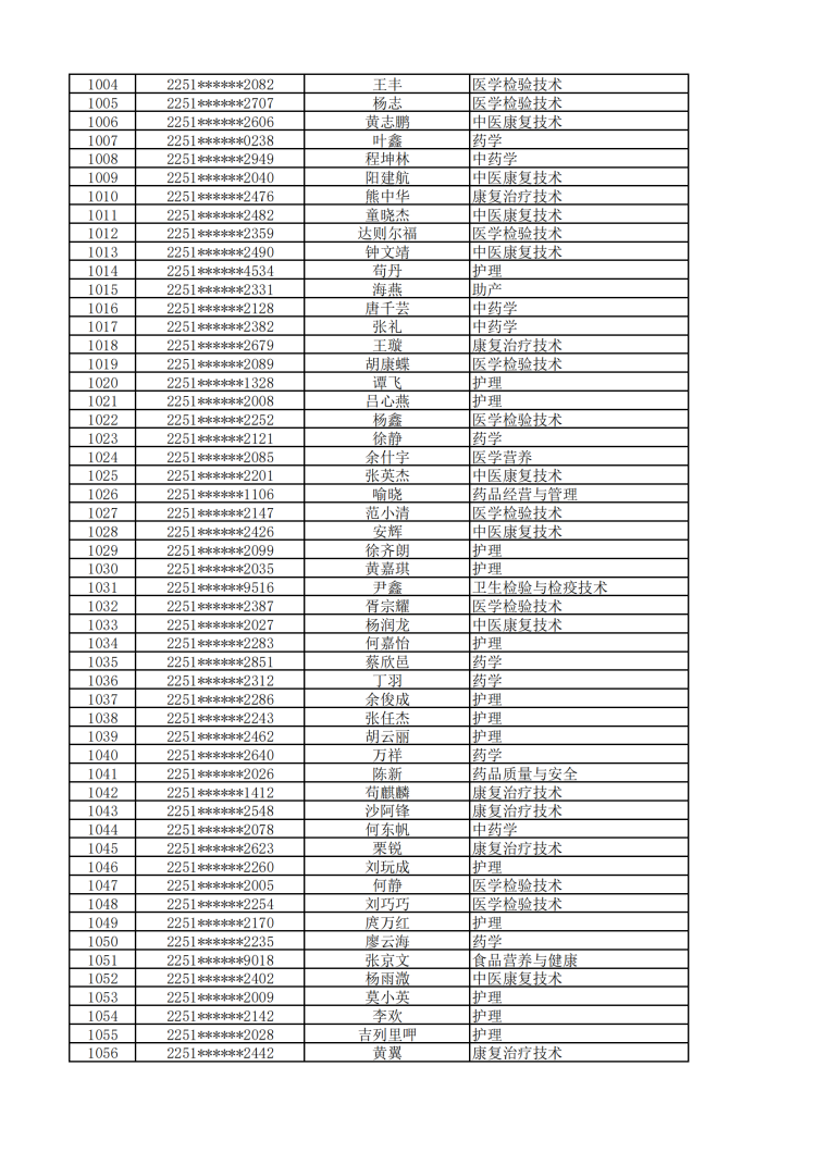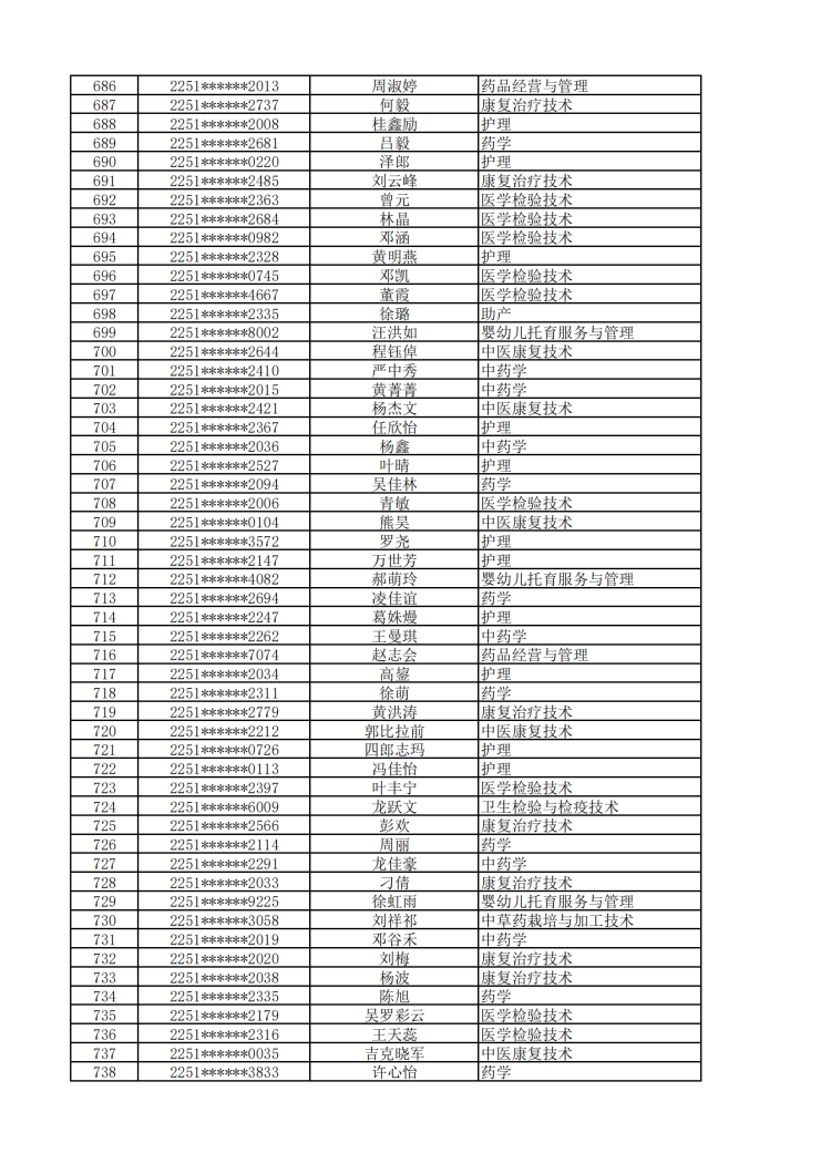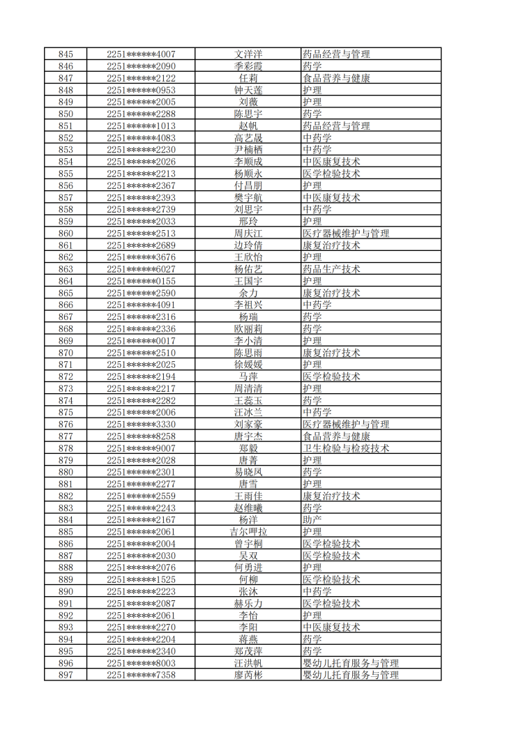 眉山药科职业学院2022年单独招生拟录取名单公示