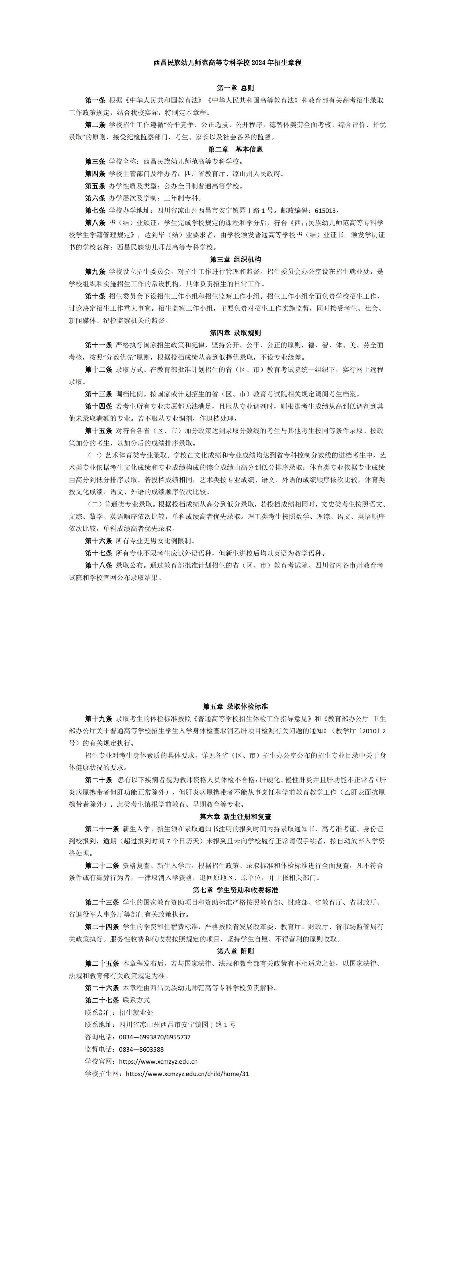 西昌民族幼儿师范高等专科学校2024年招生章程