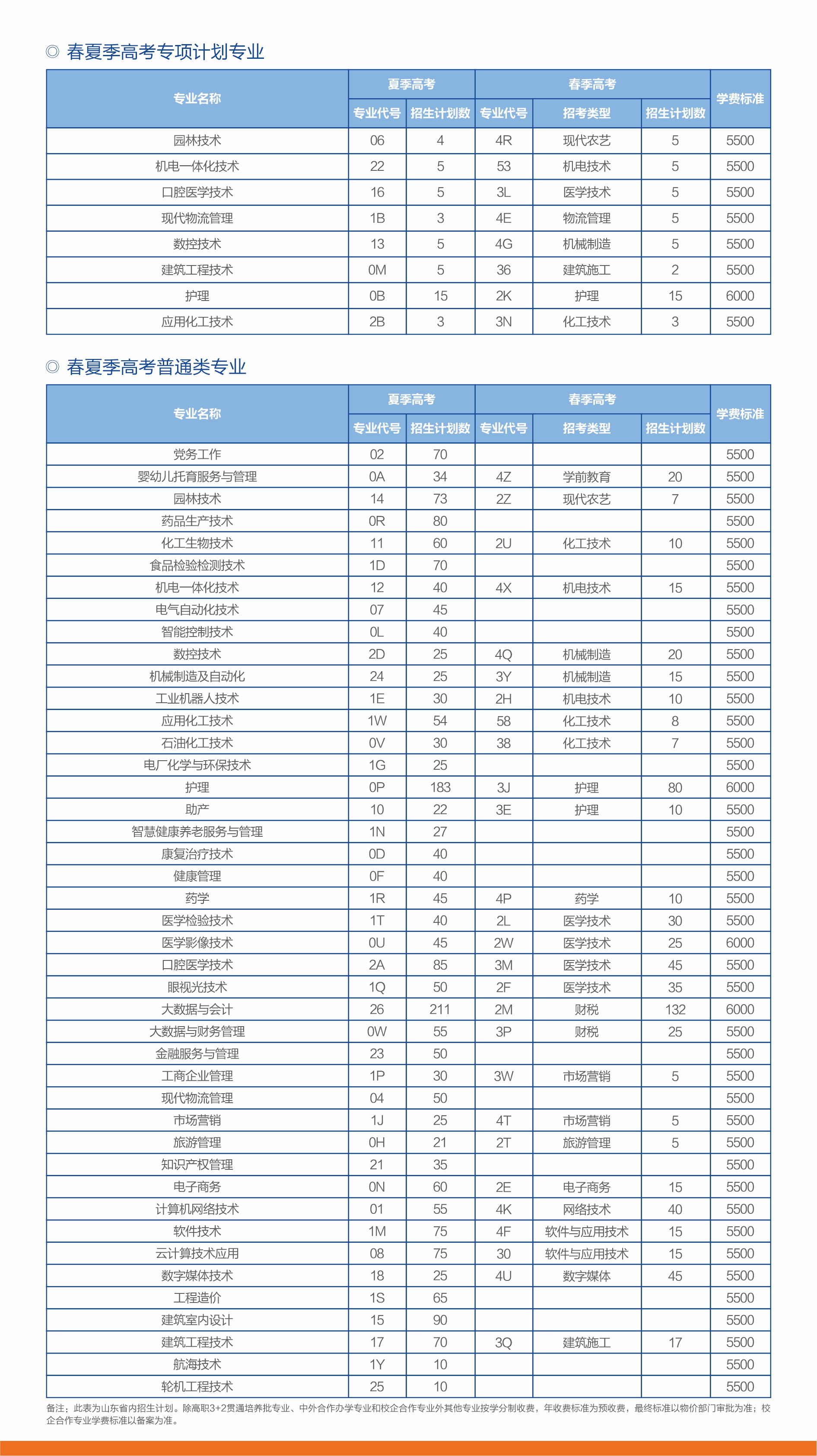 山东省内招生计划表