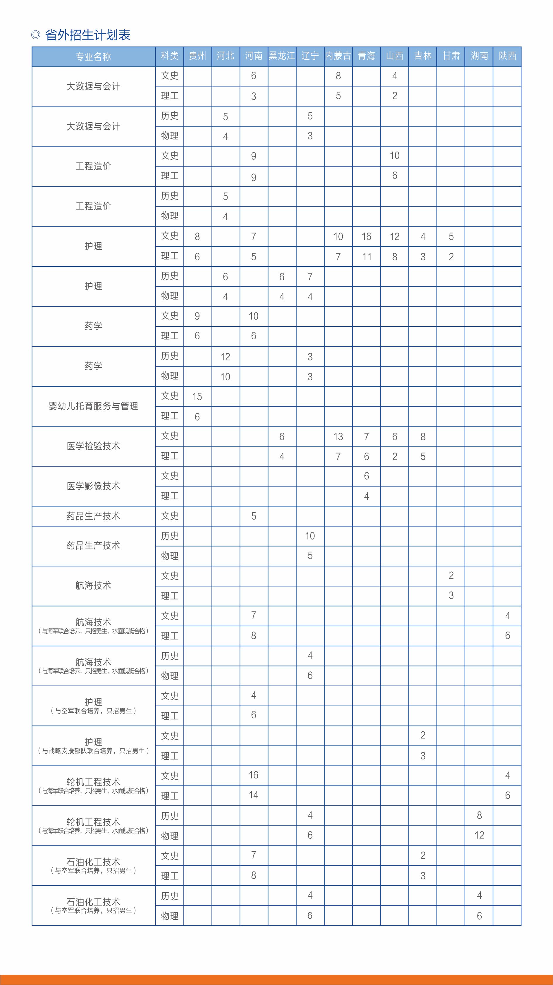 省内招生计划表