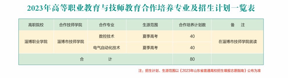 2023年高等职业教育与技师教育合作培养专业及招生计划