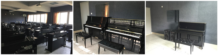 本系已具备较为完善的校内实训设备和实训环境,有硬件配备图书馆、教学楼、舞蹈房、多媒体教室的呢个教学设施。拥有学生琴房204间,教师琴房12间,立式钢琴96台,三角钢琴2台,课堂用音响设备35套(含话筒、DVD),音乐厅1个,综合厅1个,小音乐厅1个,录音棚1间,舞蹈教室2间,电子音乐实训室1间,可为学生的时间教学活动提供良好的硬件基础。