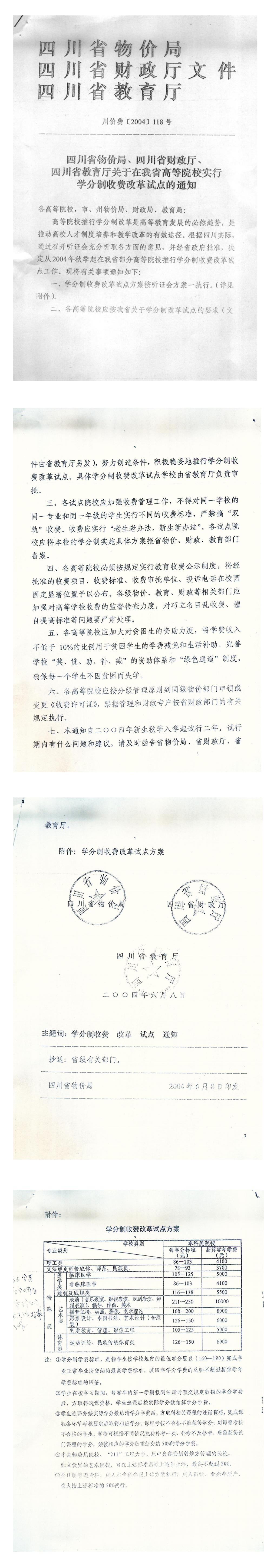关于在我省高等院校实行学分制收费改革试点的通知(川价费﹝2004﹞118号)