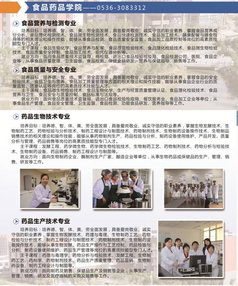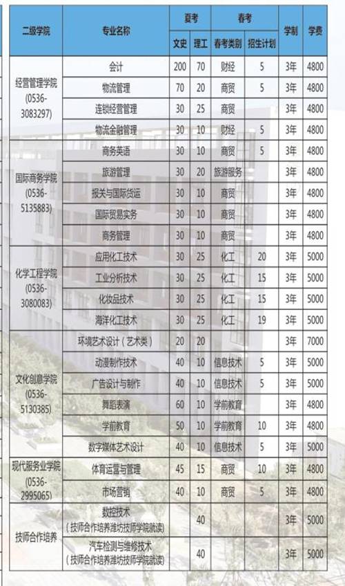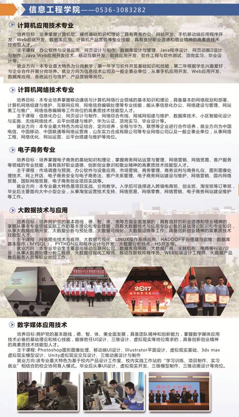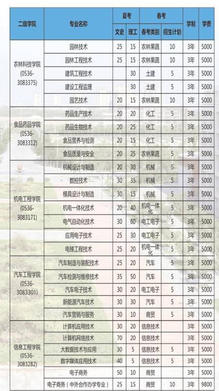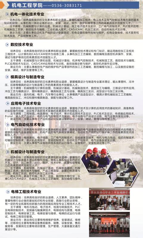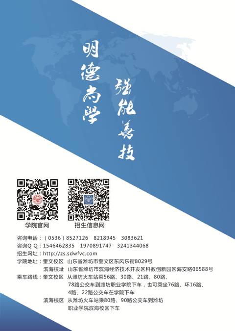 2.数控技术(技师合作培养专业)、汽车检测与维修技术(技师合作培养专业)专业是经山东省教育厅、山东省人社厅认定的全省首批高职教育与技师教育合作培养试点专业,报考该专业学生录取报到后同时注册潍坊职业学院专科学籍和潍坊市技师学校预备技师学籍,经考试合格的毕业生颁发普通高等学校专科毕业证和预备技师证。技师合作培养专业单独录取。