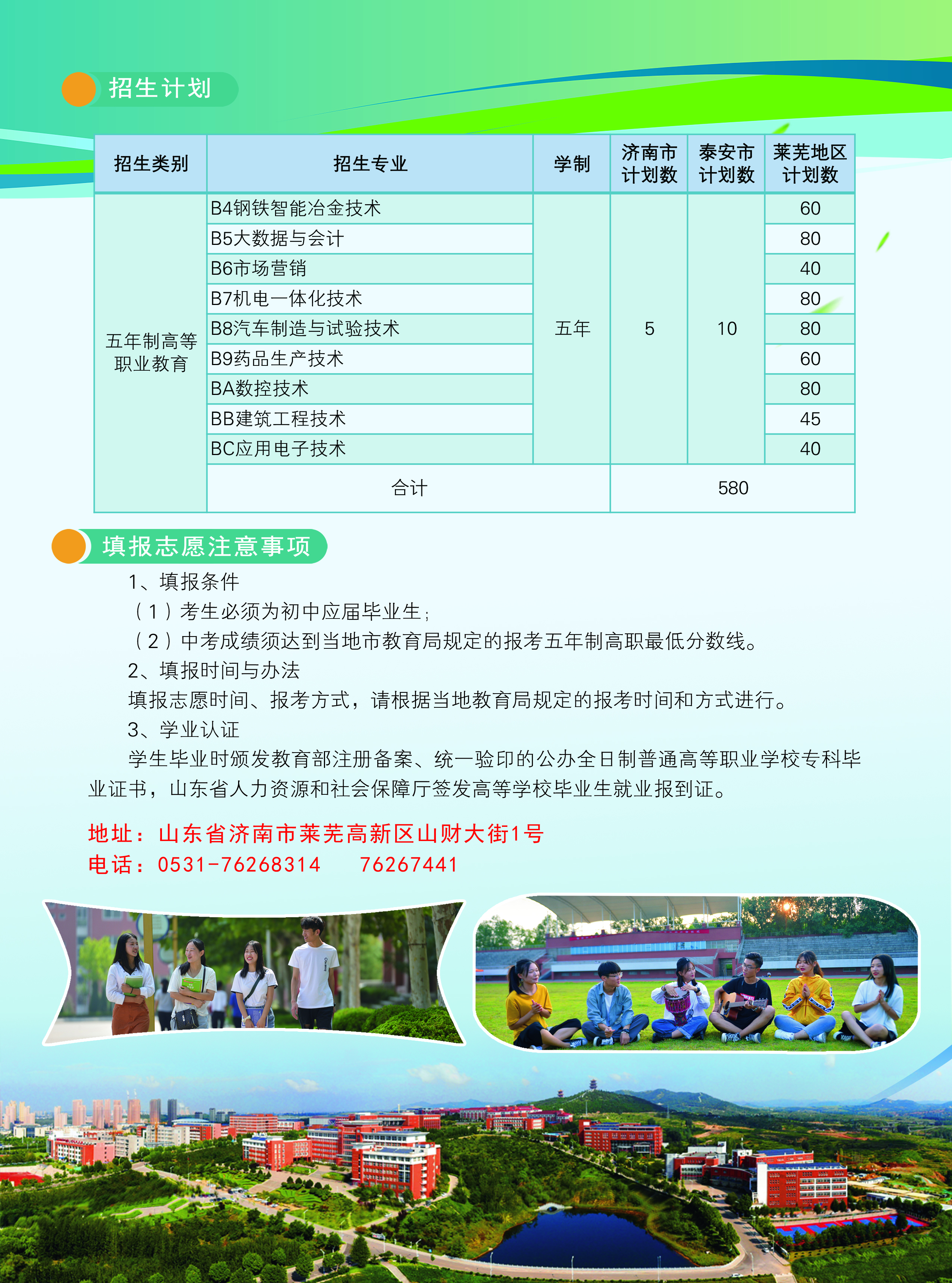 莱芜职业技术学院2022年五年制高等职业教育招生计划