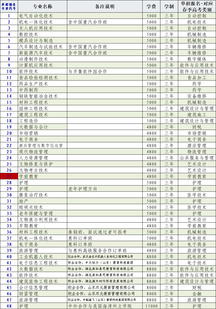 我院根据山东省教育厅《关于做好2022年高职(专科)单独考试招生和综合评价招生工作的通知》(鲁教学函﹝2021﹞19号)文件精神,参照《山东省教育厅关于公布2022年春季高考统一考试招生专业类别的通知》(鲁教职函﹝2021﹞5号)文件,结合本学院专业建设情况,确定了我院2022年单独考试招生各专业对应的春季高考统一考试专业类别,现公告如下 :