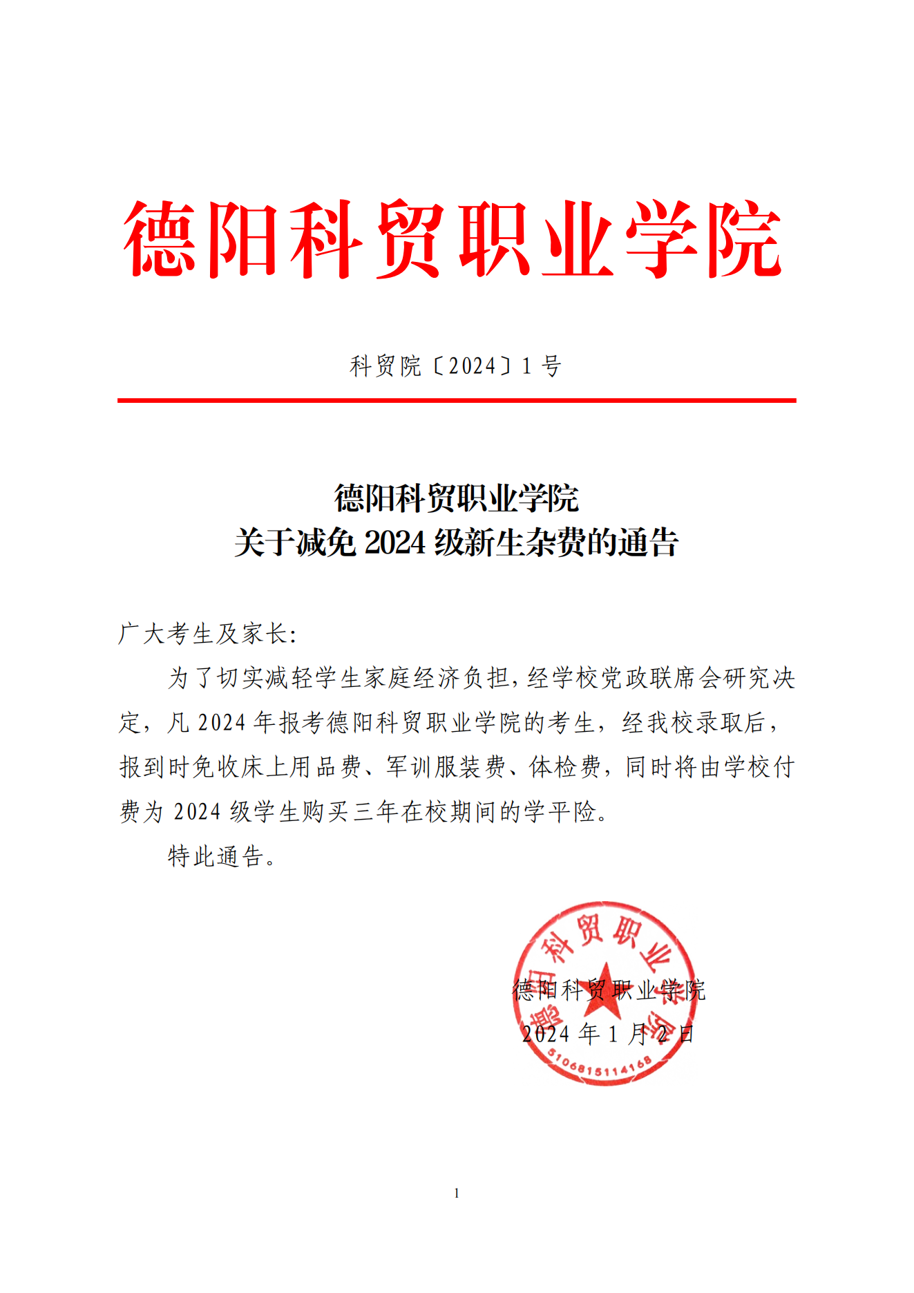 科贸院2024-01 关于减免2024级新生杂费的通告.pdf