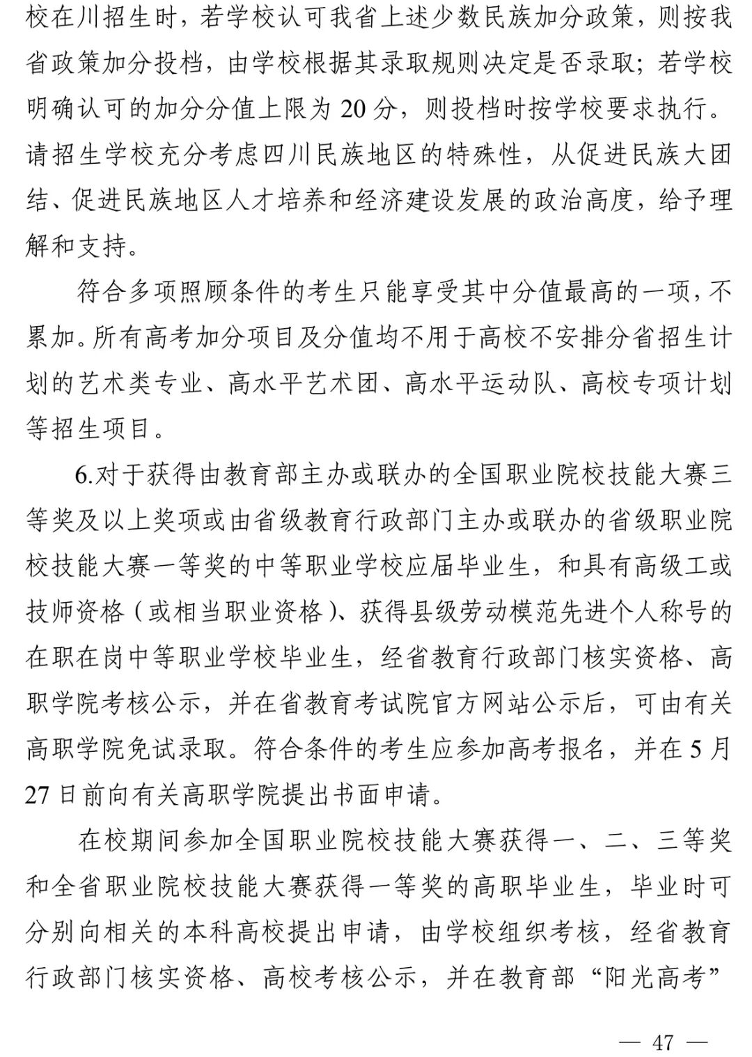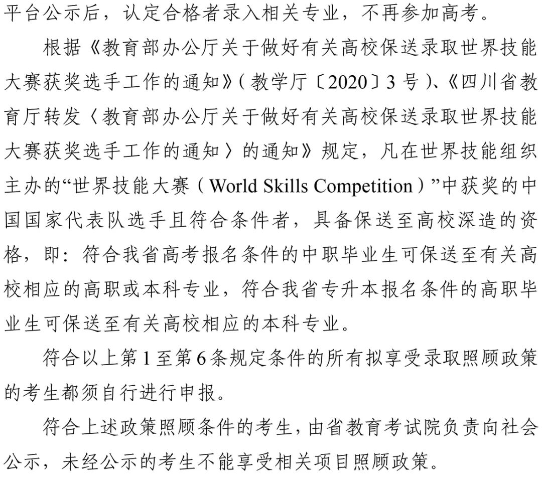 2023四川高考加分照顾录取方案尚未公布,不过每年加分政策大同小异,我们可以先参考2022年的政策规定: