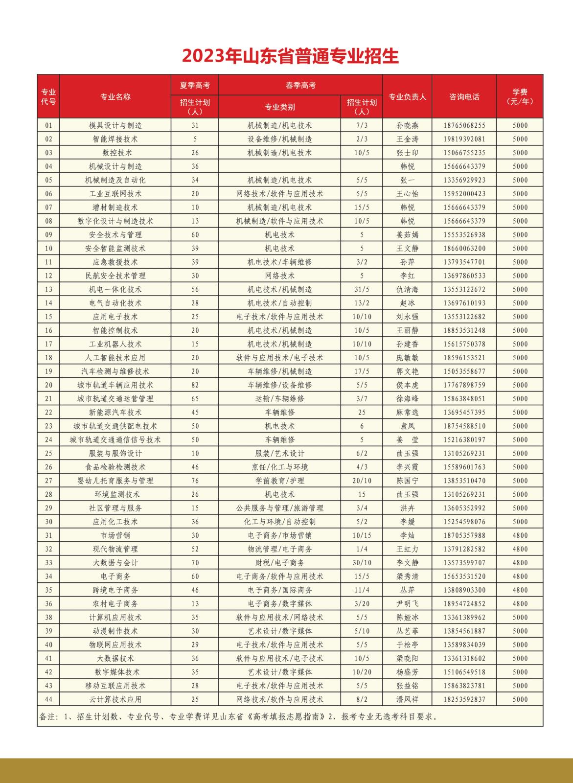 2023年春季和夏季高考统一考试招生计划表