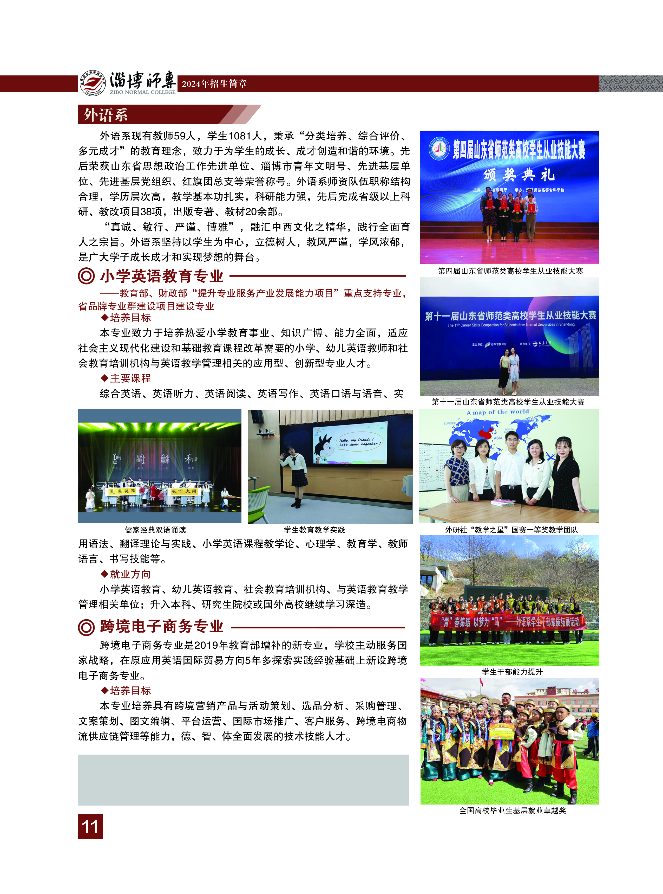 2024年淄博师专外语系及院系专业简介
