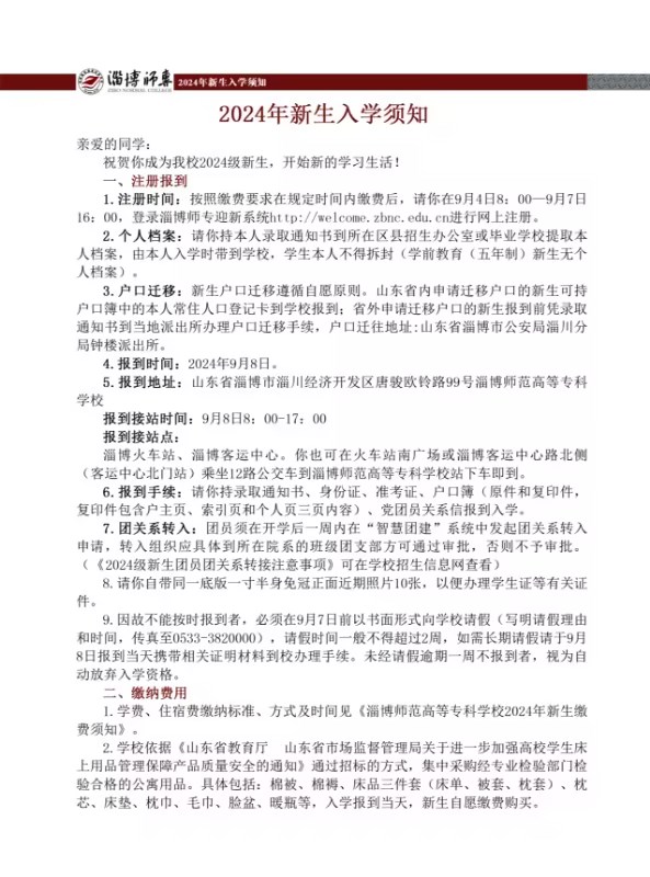 2024年新生入学须知