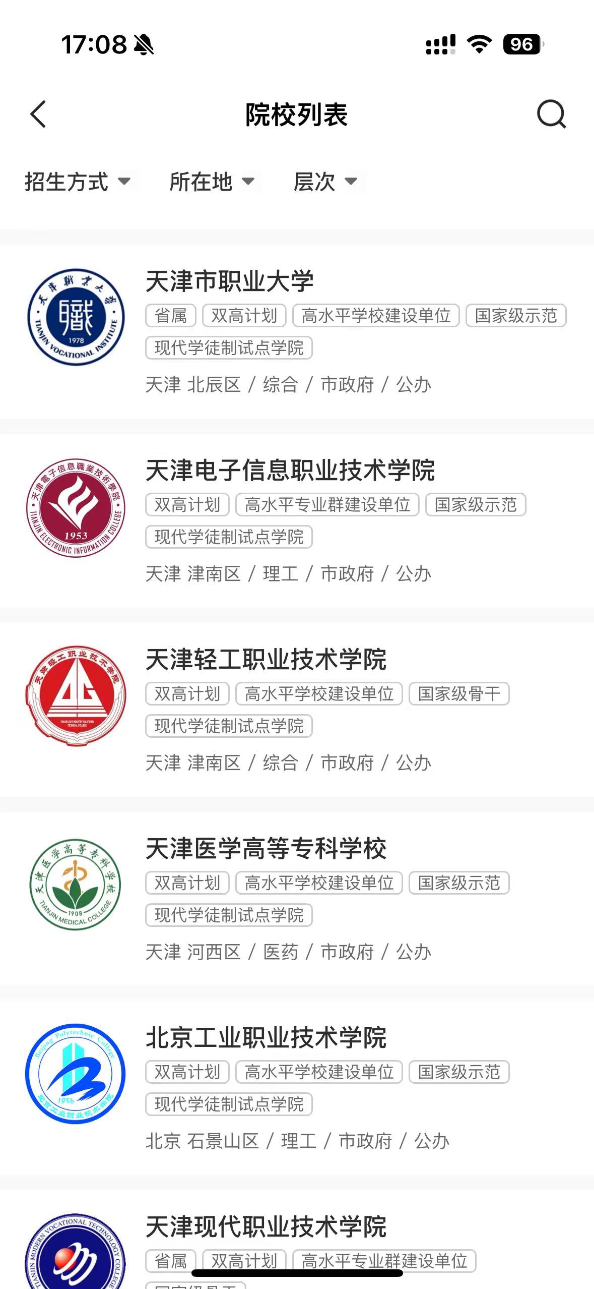 天津高职分类招生院校信息一览
