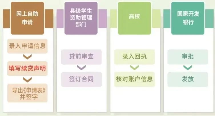 1、在前往县级学生资助管理部门办理续贷手续前,请先登录学生在线系统更新个人及共同借款人相关信息,再提出续贷申请。按照系统提示填写续贷声明后,打印《申请表》并签字。