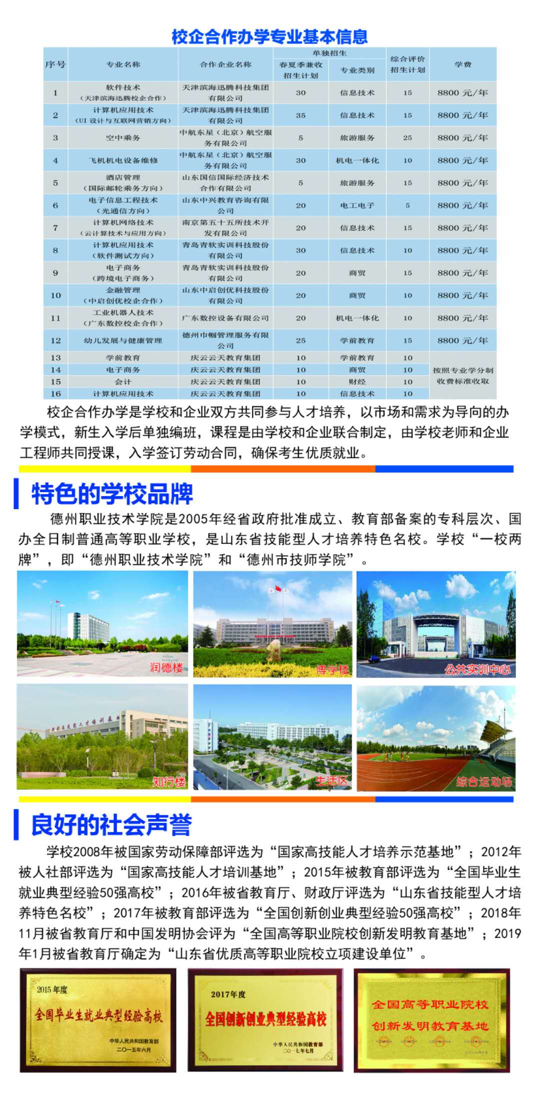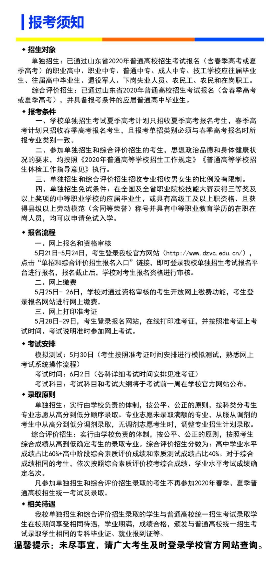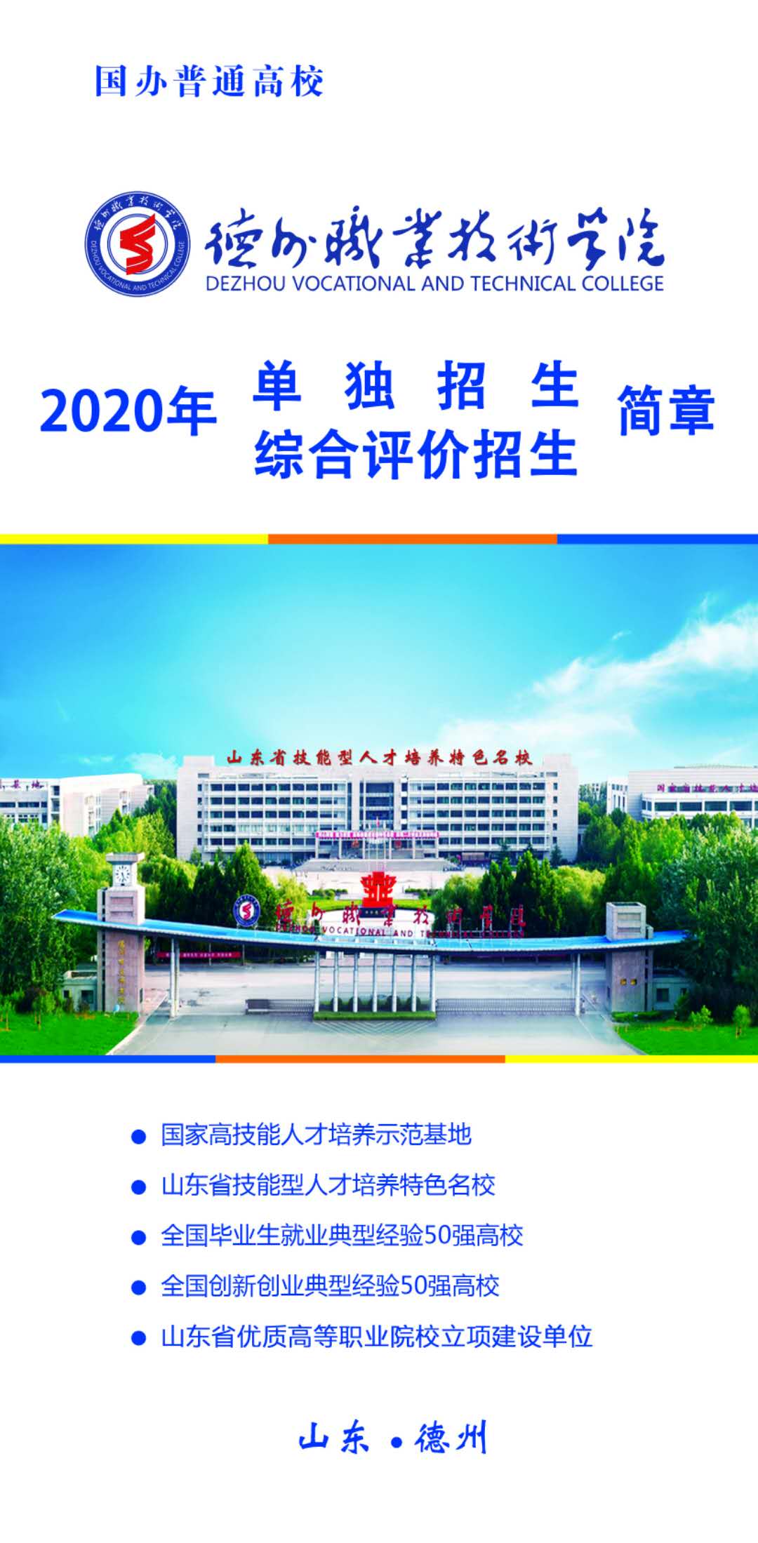 德州职业技术学院2020年单独招生、综合评价招生简章