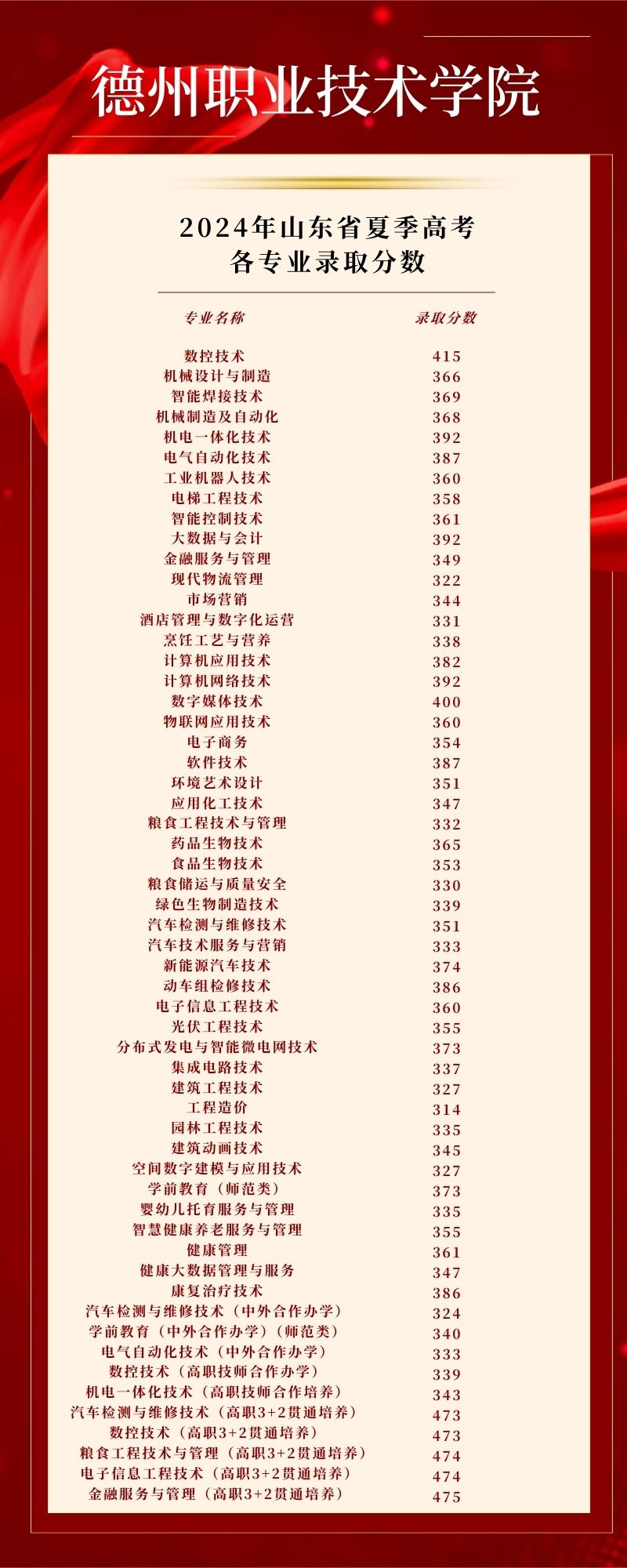 2024年山东省夏季高考各专业录取分数