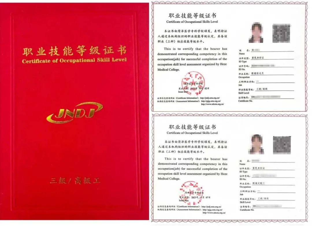 本专业学生毕业前可考取眼镜验光员和眼镜定配工(高级)职业技能等级证书。
