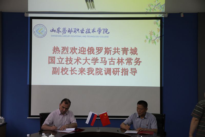 双方就高职大专学生赴俄罗斯阿穆尔共青城国立技术大学学习进行了洽谈,达成合作意向,并签订合作协议书。签字仪式后,副院长刘爱林陪同客人参观了学院实训中心。