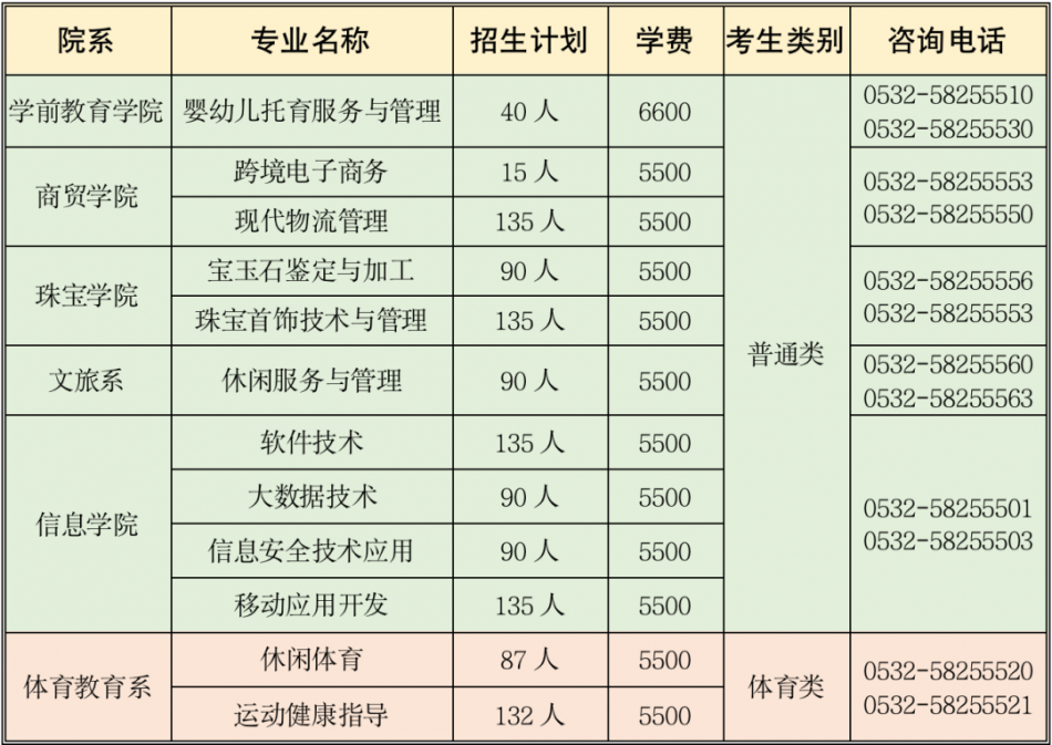 咨询电话:0532—58255088(招生处1);58255089(招生处2)。
