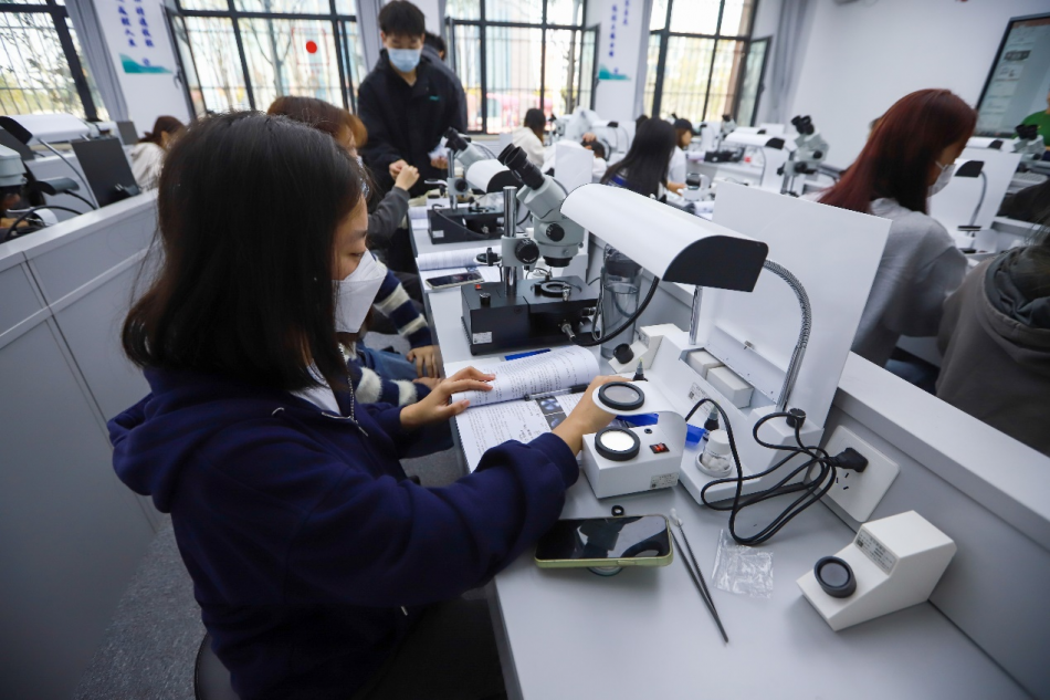 ●专业名称:首饰设计与工艺 专业代码:550123 学 制:三年 学 费:8000元/年 培养目标:培养德智体美劳全面发展,具有正确价值观、良好政治思想素质、职业道德素质、文化素质,掌握首饰设计(手绘、电绘)、首饰加工制作、个性定制、珠宝鉴定、珠宝首饰营销管理等专业理论知识,具备首饰设计与加工制作、珠宝企业营销与管理、未知宝石鉴定能力,具有创新意识和创业能力的应用型、复合型的高级应用技术型人才。 核心课程:宝石学基础、珠宝鉴定仪器操作、首饰设计绘图基础、设计色彩、首饰制图与效果表现、首饰设计(手绘)、电脑辅助首饰设计、首饰制作工艺、宝石鉴定、珠宝营销与管理、珠宝新媒体营销、首饰配饰艺术、首饰雕蜡起版、珠宝店铺管理、首饰绳艺等。就业方向:面向珠宝首饰行业企业,从事首饰设计、首饰制作、首饰检验与维修、珠宝鉴定与营销等工作,主要就业岗位为首饰设计、首饰制作、珠宝首饰营销、珠宝首饰检验、珠宝企业经营与管理、珠宝企业营销策划等。 专业优势:学校为青岛市唯一一所开办珠宝首饰类专业的大专院校,首饰设计与工艺专业为学校重点打造的三产服务类专业。建成珠宝质检技能实训室、金工、首饰设计、宝石鉴定、智能制造、金工工艺大设备室、贵金属制作理实一体实训室等7个实训室,建筑面积586.83平方米,总投资700万元,其中设备总值624万元,生均实训设备3.9万元。目前,本专业专兼职教师共19人,涵盖高职教师、大学教授、行业企业工程师及一线技术工匠。在教学资源开发上,团队带头人与企业共同开发活页式项目导向的《Jewel CAD首饰设计》教材,开发市级《宝石学基础》、《电脑首饰设计》精品课程,开发6门学徒制校企双主体育人模块式教材及多达1T的信息化教学资源,为专业建设、课程建设和学生技术技能提升保驾护航。