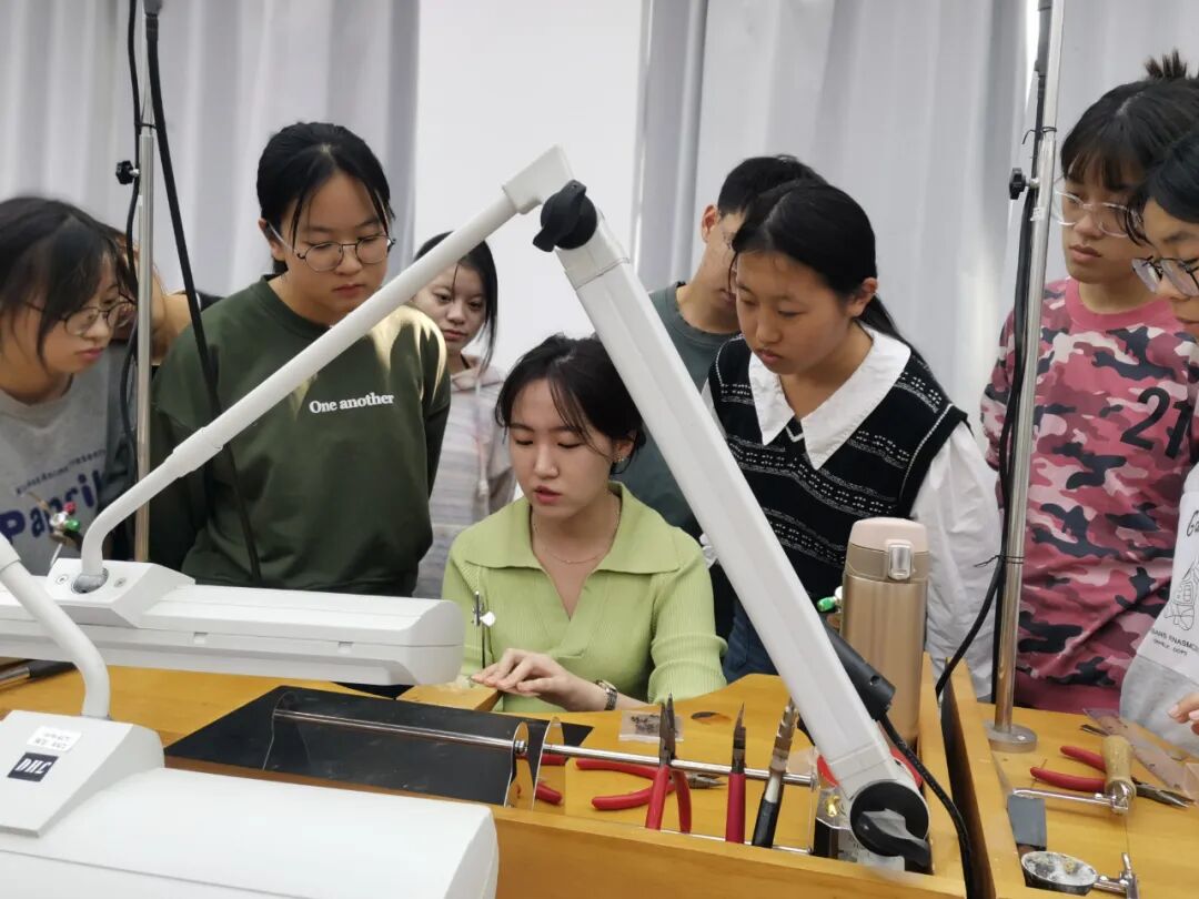 珠宝学院成立于2022年10月,目前开设宝玉石鉴定与加工、首饰设计与工艺、珠宝首饰技术与管理及视觉传达设计等4个专业。其中首饰设计与工艺等3个珠宝类专业分别对接珠宝首饰产业链上游、中游和下游,组成珠宝首饰专业群。视觉传达设计类专业紧跟企业行业需求,设置了平面设计和新媒体方向。