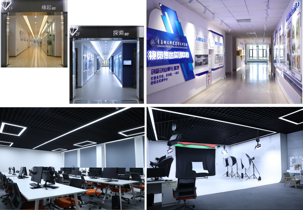 珠宝学院遵循现代职业教育理念,建成了集教学、培训、生产、技术研发“四位一体”的,包括珠宝鉴定、金工工艺、珠宝加工、珠宝营销、数字建模、首饰电绘等17个理实一体实训室在内的珠宝首饰类校内实训基地。学院还设有市级科技创新中心一座,由摄影摄像实训室、数字媒体实训室、虚拟仿真实训中心、视觉艺术实训室、数字音效实训室、青柚印象数字图文创新中心组成的视觉传达创新创业孵化中心一座。