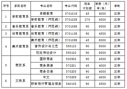 注意:报考学校学前教育、音乐教育、美术教育、早期教育、国际商务、中文、商务日语、商务英语、视觉传达设计、首饰设计与工艺、研学旅行管理与服务专业的考生,录取批次为普通类常规批,报考学校体育教育专业的考生,录取批次为体育类常规批。