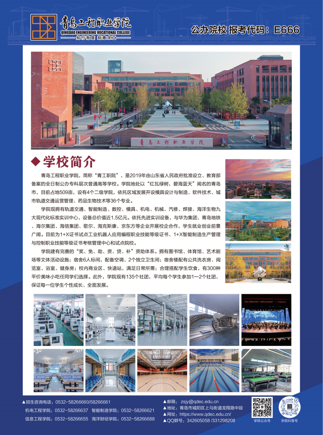 学院地址:青岛市城阳区上马街道龙翔路中段青岛工程职业学院