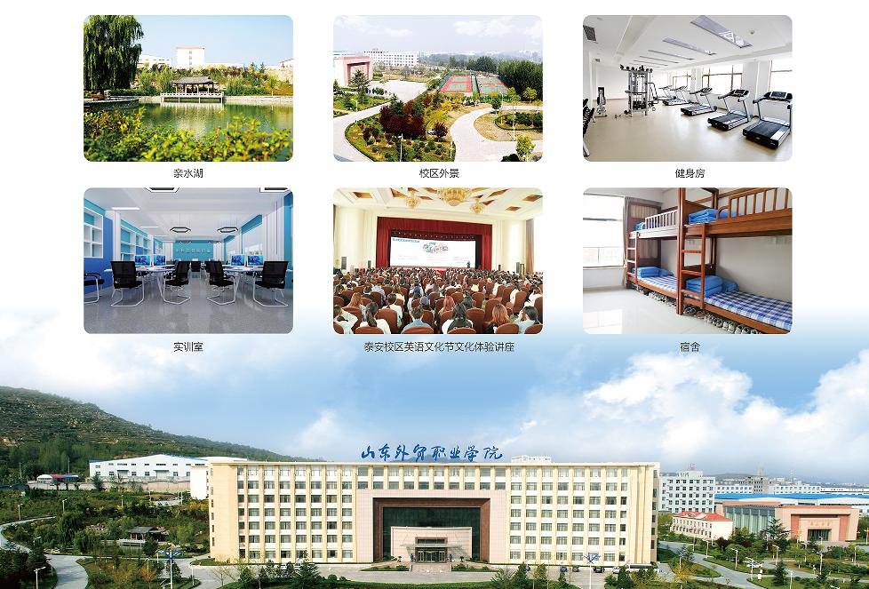 山东外贸职业学院泰安校区建成于2012年,位于泰安市岱岳区金牛山路57号,占地230亩,是学院重要教学场所和实习、实训基地。校区内拥有标准化的教学楼、学生宿舍、餐厅,可容纳3000名学生学习实训。