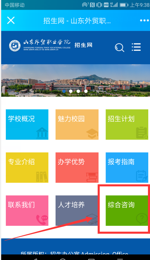 招生官网手机版本请点击综合查询模块。