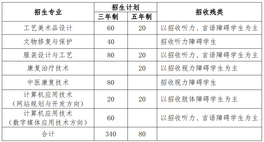 2025年残疾考生单独招生计划:三年制340人,五年制80人。招生专业及招生计划如下: