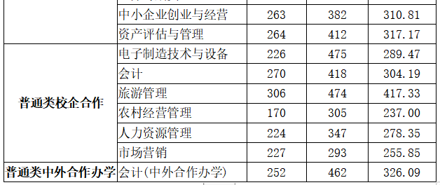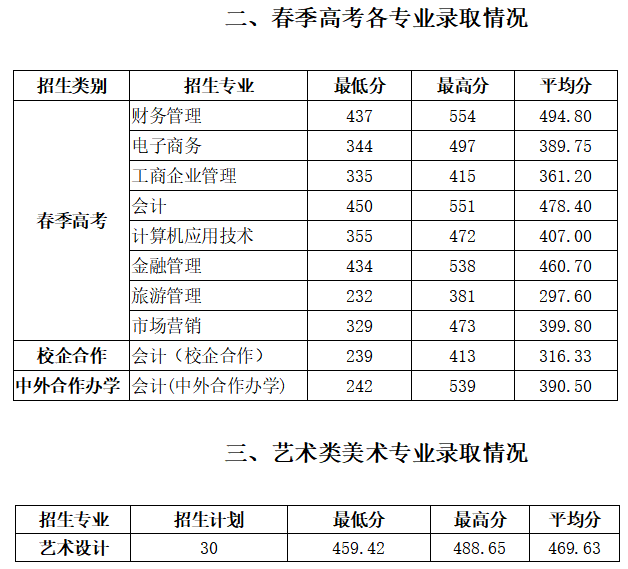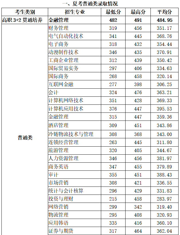 学院2020年夏季统招各专业录取最高分、最低分、平均分